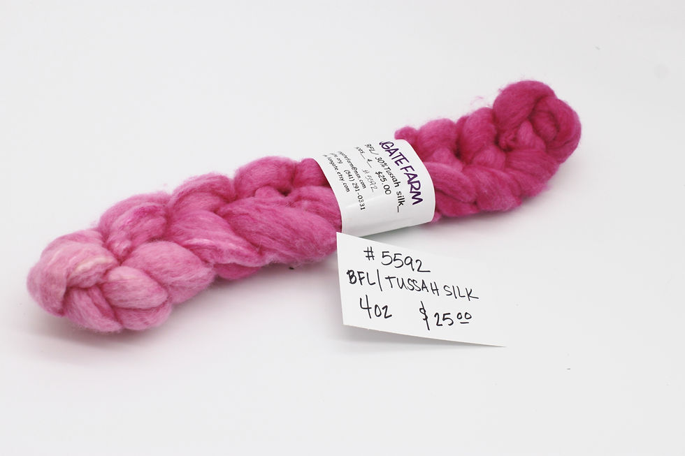 Showcasing the fiber and wool products that are grown by the Bluefaced Leicester Sheep here at Liongate Farm. The sheep are sheared by hand to limit second cuts. The locks are washed and sold naturally or hand dyed with acid dyes. Some are sent out to be roved at a local mill here in Oregon. ​